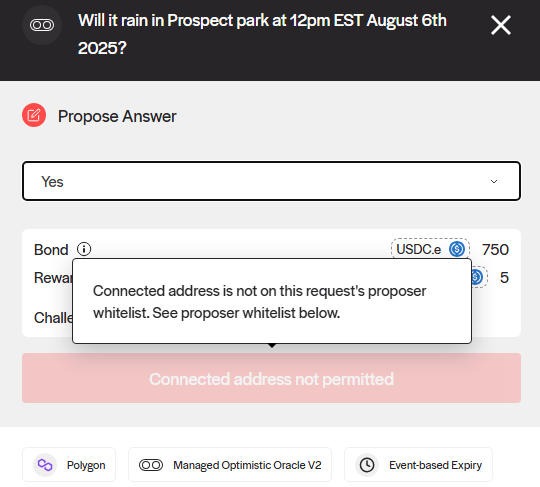 * If your connected address is not on the request's proposer whitelist, the propose button on the request's sidebar will be disabled.